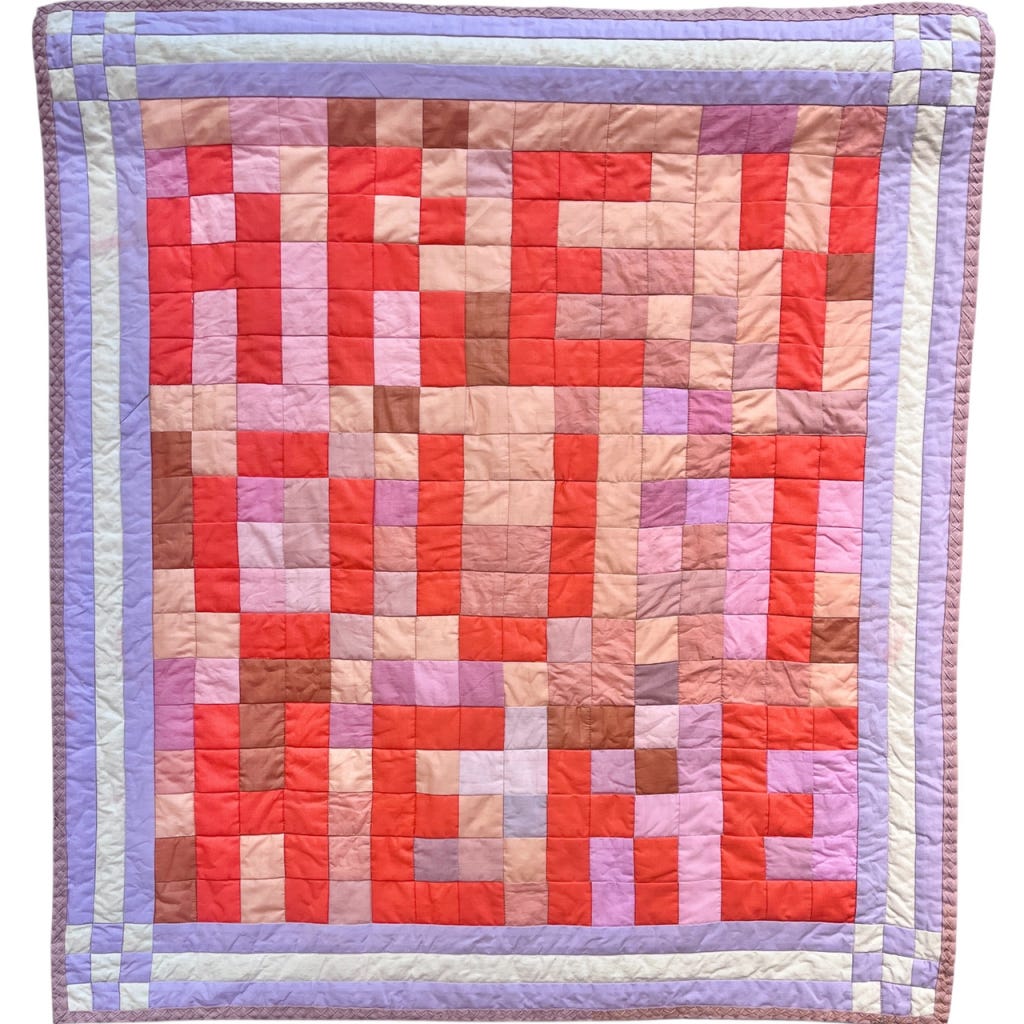 Some quilts take over a year to finish. This piece became itself very quickly, about 2 months from spark to signature. The idea came to me in early March. I was (am still) brewing in the pain of the everyday moments with my ex that I didn’t know I would later want to memorialize. …
